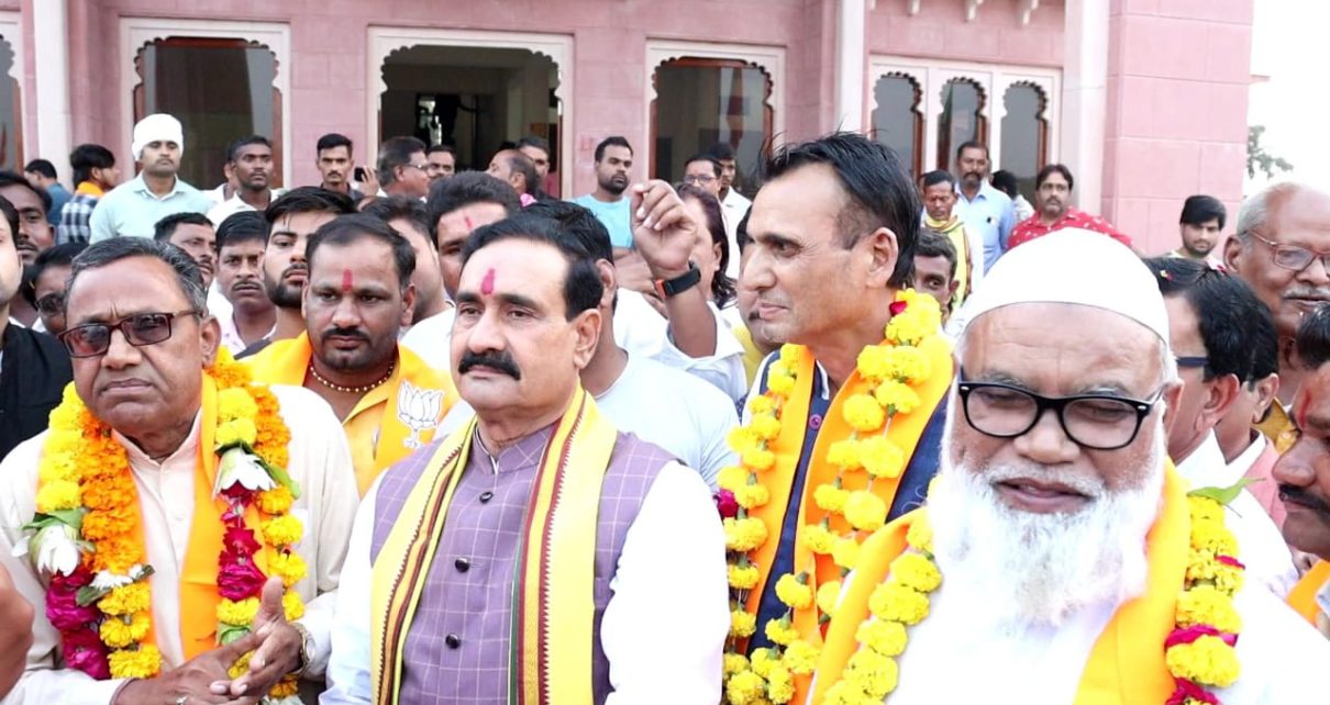 दतिया। दतिया कांग्रेस में टूट लगातार जारी है एक के बाद एक कांग्रेस के नेता डॉ नरोत्तम मिश्रा के समर्थन में भाजपा का दामन थामते जा रहे है। मंगलवार को वरिष्ठ कांग्रेस नेता गुरुदेव शरण गुप्त भी भाजपा में शामिल हो गए।उनके साथ ही कांग्रेस नेता अमोना शेर सिंह कुशवाह व डॉ ।सैय्यद माशूक अली ने भी भाजपा कि सदस्यता ली।सभी को डॉ मिश्रा ने भाजपा कि सदस्यता दिलाई।डॉ मिश्रा ने श्री गुरदेव शरण गुप्त सहित तीनो का स्वागत करते हुए कहा कि आप सबका भाजपा परिवार में स्वागत है।आप सब अब भाजपा के मूल मंत्र सेवा कार्य मे जुट कर अंतिम व्यक्ति के उत्थान कार्य करेंगे ऐसा मेरा विश्वास है।कांग्रेस कि सदस्यता लेने वाले श्री गुरदेव शरण ने इस अवसर पर कहा कि कांग्रेस की न कोई नीति है और न रीति। उसका एक जूता यहां होता है तो दूसरा कही और। मेने वहां रहकर इतना जाना है कि कांग्रेस के हाथों में देश,प्रदेश और दतिया जिले का कोई भविष्य नही है। इसी लिए मेने अपनी पार्टी भाजपा में फिर आने का फैसला किया।