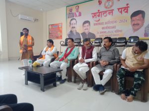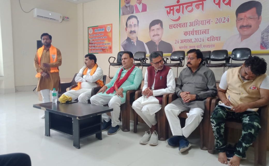 दतिया/ भारतीय जनता युवा मोर्चा के द्वारा भाजपा कार्यालय दतिया पर सदस्यता अभियान 2024 को लेकर जिला बैठक का आयोजन किया गया जिसमें मुख्य अतिथि श्री विजय द्विवेदी जी संभाग प्रभारी सदस्ता , विशिष्ट अतिथि मधुसूदन भदोरिया जी दतिया जिला 10 मंडल प्रभारी सदस्ता, भाजपा जिला अध्यक्ष सुरेंद्र विधोलिया जी, श्री पप्पू पुजारी जी वरिष्ठ भाजपा नेता, रघुवीर कुशवाहा जी मंडल अध्यक्ष भाजपा दतिया ग्रामीण उपस्थित रहे बैठक मे स्वागत भाषण जिला अध्यक्ष मानसिंह कुशवाहा के द्वारा दिया एवं आभार बडोनी मंडल अध्यक्ष गौरव गुप्ता के द्वारा दिया गया भाजपा केंद्रीय नेतृत्व द्वारा प्रदेश में चलाए जा रहे सदस्यता अभियान संगठन पर्व के अंतर्गत अतिथियो द्वारा बैठक मे बताया गया घर-घर जाकर अधिक से अधिक भाजपा की सदस्यता करें जिला अध्यक्ष मानसिंह कुशवाहा युवा मोर्चा के द्वारा जिला बैठक आयोजन किया गया बैठक में प्रदीप गुर्जर जिला उपाध्यक्ष एवं दतिया विधानसभा प्रभारी सदस्ता राघवेंद्र सिंह चौहान जिला उपाध्यक्ष, विनोद कुशवाहा भांडेर मंडल अध्यक्ष, राहुल कमरिया अनाव मंडल अध्यक्ष, गौरव गुप्ता बडोनी मंडल अध्यक्ष संदीप गुर्जर जिला मीडिया प्रभारी, दशरथ कुशवाहा दतिया ग्रामीण मण्डल सदस्यता अभियान प्रभारी मनोज गौतम उदगुआ मंगल सदस्यता प्रभारी, कान्हा पंचोली जिला सोशल मीडिया प्रभारी, दीपेंद्र बडोनी मंडल महामंत्री,राज शर्मा मंडल उपाध्यक्ष, सुरेश कुशवाहा, मयंकर यादव भांडेर मंडल उपाध्यक्ष,खेरी गुर्जर, अनुज खरे सेवड़ा महामंत्री,अरशद खान, सुमित, नारायण कुशवाहा,आदि युवा मोर्चा के पदाधिकारी उपस्थित रहे |
