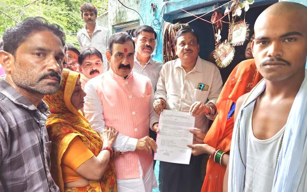 दतिया।पूर्व गृहमंत्री डॉ. नरोत्तम मिश्रा ने विगत दिनों पीतांबरा पीठ के सामने बनी मल्टी पार्किंग के गढढें में डूबने हुई घटना में रूपनारायण उर्फ बिटटू शर्मा पुत्र दीपक शर्मा निवासीबीएसएनएल आफिस के पास दतिया की मौत हो गई थी। विटटू शर्मा ने मृत्यु पर शासन द्वारा स्वीकृत की गई चार लाख की आर्थिक सहायता राशि का स्वीकृति पत्र उनके परिजनों को प्रदान किया।इस मौके पर जिला पंचायत अध्यक्ष प्रतिनिधि धीरू दांगी, नगरपालिका अध्यक्ष प्रतिनिधि प्रशांत ढेगुला,तहसीलदार दतिया बृजमोहन आर्य सहित अन्य जनप्रतिनिधिगण उपस्थित थे।