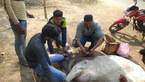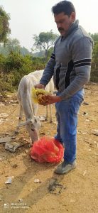 *चिरगांव :-* _आज हम कहानी बताने जा रहे हैं एक ऐसे कर्मवीर की जो_ चिरगांव नगर से है ,कर्मवीर अशोक साहू जी जिन्हें मामा के नाम से भी जाना जाता है जी हां अशोक साहू जी (बीस) 20 वर्षों से दिन हो या रात गौ सेवा में तत्पर रहते हैं गौ माता को अपनी माता मानते हैं और दिन हो या रात कुछ भी हो असहाय आवारा पशुओं को प्रतिदिन चारा भूसा आदि उपलब्ध कराते हैं और दुर्घटना ग्रस्त गोवंश का उपचार कर सेवा करते हैं अशोक मामा जी ने बताया कि सड़क दुर्घटना में घायल गायों की सूचना मिलते ही अपने आश्रम स्थल पर ले आते हैं ,व आज तक लगभग 3,000 से अधिक गायों का उपचार करके उन्हें स्वस्थ्य किया साथ ही लगभग 3000 गायों को सम्मान पूर्वक दफनाकर अंतिम संस्कार किया है अशोक मामा जी के सहयोगी ,रात्रि के समय में प्रतिदिन ढाई सौ से 300 गोवंश को भोजन उपलब्ध कराते हैं व नगर में घर-घर जाकर रोटियां एकत्रित करते हैं और नगर में घूम कर गायों व कुत्तों को खिलाते हैं अशोक साहू जी के सहयोगी प्रशांत कुशवाहा, अभय राठौर, सागर कुशवाहा,निहाल झा, आदि युवा साथ रहते हैं