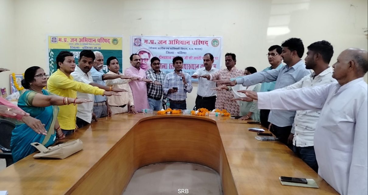 कार्यक्रम की अध्यक्षता जन अभियान परिषद के संभागीय समन्वयक सुशील बरुआ ने की। जिला कार्यक्रम अधिकारी महिला बाल विकास अरविंद उपाध्याय उपस्थित थे।मुख्यवक्ता के रूप में संस्कृत महाविद्यालय के प्राचार्य डॉ. हरेंद्र भार्गव व विशिष्ट अतिथि के रूप में अनेक इंटरनेशनल अवॉर्ड विनर डॉक्टर आलोक सोनी रहे। अतिथियों का स्वागत जन अभियान परिषद के जिला समन्वयक मुनेन्द्र शेजवार, ब्लॉक समन्वयक शैलेंद्र लिटोरिया, ज्योति गोस्वामी ने किया। कार्यक्रम का सफल व प्रभावी संचालन समाजसेवी रामजीशरण राय ने किया।कार्यक्रम में जिला कार्यक्रम अधिकारी महिला बाल विकास अधिकारी ने कहा कि हमें दीनदयाल उपाध्याय जैसे महान व्यक्ति के विचारों को अपनाकर समाज के हर वर्ग को लाभ पहुंचाने का प्रयास करना चाहिए। डॉ. हरेन्द्र भार्गव ने कहा- दीनदयाल उपाध्याय मन, वचन, कर्म से समाज के उत्थान हेतु अनवरत, आजीवन संलग्न रहे, उनका हर काम समाज के अंतिम छोर के व्यक्ति को फायदा पहुंचाने का था और वह इस काम में सफल भी हुए एकात्म मानवतावाद और अंत्योदय विचारधारा को आज हमें भरपूर प्रचार -प्रसार करना चाहिए जिससे अंतिम छोड़ के व्यक्ति को फायदा पहुँच रहा है। डॉ.आलोक सोनी ने कहा कि दीनदयाल उपाध्याय का पूरा जीवन संघर्षमय रहा। उन्होंने समाज के उत्थान के लिए अपना पूरा जीवन समर्पित कर दिया। आज भारत सरकार उनके विचारों को अंगीकार करके अंतोदय विचारधारा को अंतिम छोर के व्यक्ति को फायदा पहुंचाने का प्रयास कर रही है, जन अभियान परिषद के मुनेन्द्र शेजवार बेहतरीन कार्य कर रहे है। दीनदयाल उपाध्याय व्यक्ति नहीं एक विचार थे। इस अवसर पर कमलेश भार्गव, सुशील बरुआ, डॉ. हरेंद्र भार्गव, अरविंद उपाध्याय व डॉ. आलोक सोनी को जन अभियान परिषद के जिला समन्वयक मुनेन्द्र शेजवार, ब्लॉक समन्वयक शैलेंद्र लिटोरिया वज्योति गोस्वामी ने स्मृति चिन्ह भेंट करके सम्मान किया। कार्यक्रम के अंत में मुख्य कार्यपालन अधिकारी जिला पंचातय कमलेश भार्गव ने नशा मुक्ति के लिए ओर बाल विवाह मुक्त दतिया बनाने हेतु सामूहिक शपथ दिलाई।इस अवसर पर संजय रावत, सुदीप तिवारी, बलवीर पाँचाल, वैभव खरे, सहदेव कुशवाहा, पीयूष राय, चंद्रभान यादव, सुबोध शर्मा, सुनील समाधिया, अनिल पुजारी,कौशल पाठक, अनिल शर्मा, प्रदीप कुशवाहा सहित सभी ब्लॉकों के प्रमुख समाजसेवी, नवांकुर संस्थाओं व प्रस्फुटन समितियों के पदाधिकारी व सदस्यगण उपस्थित रहे। आभार ब्लॉक समन्वयक शैलेंद्र लिटोरिया ने व्यक्त किया।।
