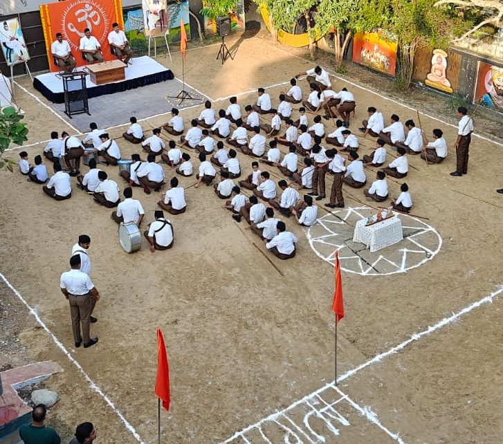 विजयदशमी के अवसर पर दतिया नगर के बाल स्वयंसेवकों का पथ संचलन एवं शस्त्र पूजन कार्यक्रम संघ कार्यालय दतिया पर आयोजित हुआ जिसमें माननीय जिला संघ चालक श्रीमान केदार सिंह जी कार्यक्रम की अध्यक्षता श्रीमान दीपक सचदेवा जी उपस्थित हुए कार्यक्रम में मुख्य वक्ता के रूप में मुरैना विभाग के शहर व्यवस्था प्रमुख श्रीमान आलोक जी राजावत उपस्थित रहे संघ 99 वर्ष की अपनी यात्रा पूर्ण कर शताब्दी वर्ष की ओर अग्रसर है संघ द्वारा समाज को शक्ति संपन्न बनाने के लिए निरंतर प्रयास किया जा रहे हैं जिसकी परिणीति भारत एक सक्षम राष्ट्र के रूप में प्रगति पर है भारत को हिंदू राष्ट्र की ओर ले जाने के लिए संघ प्रतिबद्ध है और अपने नित्य शाखा के प्रयासों से स्वयंसेवकों को कार्यकर्ता के रूप में निर्माण कर एक सफल समाज की संकल्पना के साथ कार्य कर रहा है समाज में स्वयंसेवकों की भूमिका अतुल्य नियम है चाहे वह सेवा कार्य के रूप में हो या आत्मसमर्पण के भाव के रूप में हो स्वयंसेवक प्रत्येक परिस्थिति में राष्ट्र के लिए प्रतिबद्ध रहता है और समाज को संरक्षण भी प्रदान करता है किसी भी प्रगतिशील समाज के लिए आवश्यक है की समाज में रहने वाला बहुसंख्यक वर्ग राष्ट्र भाव से उत्प्रोत हो तभी किसी राष्ट्र की प्रगति संभव है