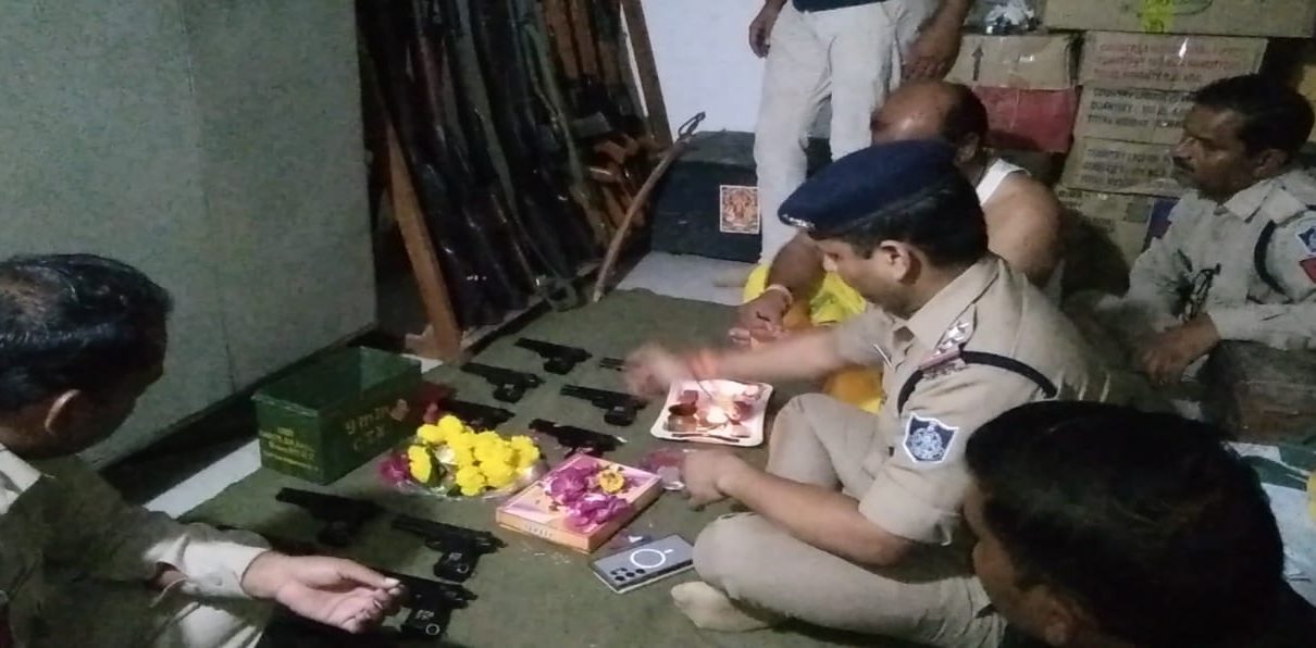 दतिया। दशहरा के पावन अवसर पर बुराई पर अच्छाई तथा असत्य पर सत्य की विजय के पर्व विजयादशमी पर पुलिस विभाग में भी शस्त्र पूजन करने की परंपरा रही है। इसी परंपरा के अनुसार सिविल लाइन थाना प्रभारी सुनील बनोरिया द्वारा थाने में पूरे विधि विधान एवं नियमों के अनुसार शस्त्रों एवं पुलिस के वाहनों का पूजन किया, शस्त्र पूजन कार्यक्रम की समाप्ति के उपरांत थाना प्रभारी द्वारा उपस्थित समस्त स्टाफ के साथ मिलकर थाना क्षेत्र बासियों को दशहरा पर्व की शुभकामनाएं दी गई। थाना प्रभारी द्वारा दशहरा पर्व पर सभी परंपराओं का निर्वाहन कर अस्त्र-शस्त्र पूजन किया गया। वैदिक मंत्रों का उच्चारण कर विधि विधान से पूजन संपन्न हुआ।