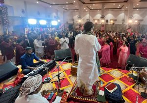 सनातन धर्म मंदिर में भजन सुनकर झूमे भक्
