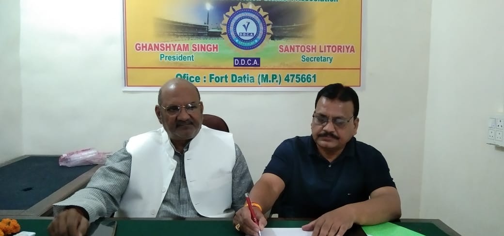 दतिया/दतिया जिले में क्रिकेट एसोसिएशन(डीडीसीए) द्वारा 2 दिसंबर से 6 दिसंबर तक दतिया स्टेडियम ग्राऊंड पर अंडर 18 संभागीय क्रिकेट प्रतियोगिता आयोजित की जा रही है।इस संबंध में दतिया जिला क्रिकेट एसोसिएशन के अध्यक्ष एवं सेवढ़ा पूर्व विधायक घनश्याम द्वारा शुक्रवार को किला प्रांगण स्थित कार्यालय में पत्रकार वार्ता कर अंडर 18 संभागीय क्रिकेट प्रतियोगिता आयोजन के संबंध में जानकारी दी।प्रेस वार्ता में संतोष लिटौरिया सचिवडीडीसीए भी मौजूद रहे।प्रतियोगिता में दतिया सहित संभाग की सभी जिलों की टीमे हिस्सा लेंगी।मैच 50 -50 ओवर के खेले जाएंगे और आईसीसी के नियमों के तहत होंगे।क्रिकेट एसोसिएशन अध्यक्ष घनश्याम सिंह ने कहा कि इस प्रतियोगिता में दतिया, गुना,अशोक नगर, शिवपुरी की टीमे भाग ले रही हैँ।सभी मैच 50 ,50 ओवरो के होंगे, फाइनल मैच दो दिन होगा।सभी मैच आईसीसी के नियमों के तहत खेले जाएंगे।इस अवसर पर दतिया की 16 सदस्यीय टीम की घोषणा की गई।इसमें तीन स्टेण्डवाय खिलाड़ी गौरव गुप्ता, सत्येंद्र कंजर, दीपक सेन रहेंगे, चयनकर्ता करता विजय सिंह बुंदेला, पंकज भट्ट, अमित श्रीवास्तव, रामू शर्मा रहेंगे।इस दौरान के.पी.यादव सहित आदि मौजूद रहे।