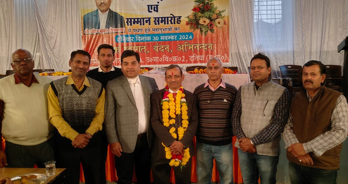 दतिया।दतिया के शा.उ. मा. वि. क्र.02 के कर्तव्य निष्ठ , ईमानदार और कर्मठ शिक्षक प्रदीप कुमार श्रीवास्तव अधिवार्षिकी आयु पूर्ण होने पर सेवानिवृत्त हो गये।इस अवसर पर श्रीवास्तव का विदाई एवं सम्मान समारोह आयोजित किया गया कार्यक्रम में मुख्य अतिथि जिला शिक्षा अधिकारी उदित नारायण मिश्र ने अपने उद्बोधन में कहा शिक्षक कभी सेवानिवृत्त नहीं होते, उनके दायित्व सेवारत एवं सेवानिवृत्त होने पर भी समान रहते हैं,पूर्व में विद्यालय में पदस्थ रहे प्राचार्य एवं शिक्षकों को भी कार्यक्रम में आमंत्रित किया गया था, स्वागत भाषण डॉ अजय रावत ने किया, कार्यक्रम का संचालन कविता समाधिया, एवं आभार प्रभारी प्राचार्य रामेश्वर दीक्षित ने किया।कार्यक्रम में डाईट प्राचार्य डॉ अनिल कुमार दुबे,शा. उत्कृष्ट उ. मा. वि प्रभारी अशोक शुक्ला पूर्व प्राचार्य बी के उज्जैनिया,बी के दुबे, पूर्व व्याख्याता पी. एम. सक्सैना,शिक्षक ओ पी साहू, रामबाबू गुप्ता, रीता यादव, दतिया विधायक के निज सहायक जाहिद अली, डीईओ कार्यालय से रवि त्रिपाठी, आनंद श्रीवास्तव, मनीष शर्मा,राम मोहन श्रीवास्तव रजनी अडजरिया, कुमकुम उज्जैनिया महेश्वर राम भगत, शिव कुमार प्रजापति,अलवेल पोटर, सी. एल. वर्मा, श्रीराम निरंजन,योगेश शर्मा, नरेश कुमार शर्मा, राज कुमार दॉगी, सोनल टहरिया, नन्दिनी कौरव, हरिराम तिवारी कल्पना गुप्ता, माधुरी गुप्ता, राकेश कुमार श्रीवास्तव, महेश कुमार शुक्ला, तबस्सुम आरा, रेखा राजपूत, रागिनी याज्ञिक, सुरेन्द्र परमार, देवेन्द्र शेखर, रीता पाराशर,राजन सिंह गुर्जर, चन्द्रमणि पाण्डेय कटारिया जी आदि उपस्थित रहे।
