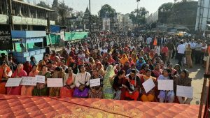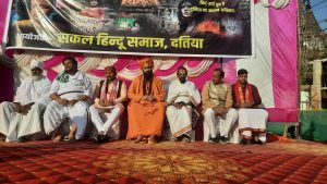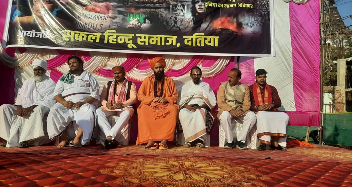 दतिया।बांग्लादेश में सरकार के तख्ता पलट के पश्चात हिंदुओं एवं अन्य अल्पसंख्यकों पर हो रहे सरकारी और इस्लामिक अत्याचारों के विरोध में सकल हिंदू समाज दतिया द्वारा नगर में शांति मार्च निकाला गया, उसके पश्चात एक विशाल जनसभा का आयोजन किया गया, जिसमें मुख्य वक्ता के रूप में समाजसेवी विश्व वर्धन भट्ट द्वारा अपने उद्बबोधन में बताया गया कि, भारत को धर्म के आधार पर खंडित किया गया था, बांग्लादेश में साढ़े चार करोड हिंदू विलुप्त हो गए हैं, हिंदू पुलिस वालों और शिक्षकों को हटा दिया गया है, उन्होंने बताया कि हिंदुओं में सद्गुण विकृति हो गई है, पृथ्वीराज चौहान ने 16 बार मोहम्मद गौरी को क्षमा कर दिया था ,यह विशेषता के साथ सद्गुण प्रकृति हुई कोरोना काल में बांग्लादेश के इस्कॉन मंदिर ने एक लाख भोजन के पैकेट प्रतिदिन दिए वस्त्र दिए दवाई दी और उन्होंने इसके बदले क्या दिया आज इस्कॉन मंदिर को ध्वस्त कर दिया मूर्तियां खंडित कर दी हिंदुओं के घरों पर कब्जा कर बहन बेटियों को उठा लिया, किंतु आज मानव अधिकार की संस्थाएं चुप हैं मंच पर आसीन संत समाज में अनंत विभूषित संत श्री श्री 1008 श्री अनिरुद्धवन महाराज धूमेश्वर धाम पीठाधीश्वर संत श्री 1008 सुदर्शन जी महाराज महंत कबीरपंथी आश्रम घोटेश्वर बडौनी पंडित राधाबल्लभ नागार्ज भागवत आचार्य 108 श्री दूध खोय सरकार जी श्री बुंदेला सरकार जी केदार सिंह गुर्जर समाजसेवी उपस्थित रहे,उपरोक्त सभी संत समाज ने जिला पंचायत सीईओ कमलेश भार्गव को राष्ट्रपति के नाम एक ज्ञापन दिया,कार्यक्रम का आयोजन समस्त हिन्दू समाज द्वारा किया गया।