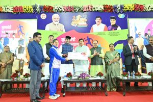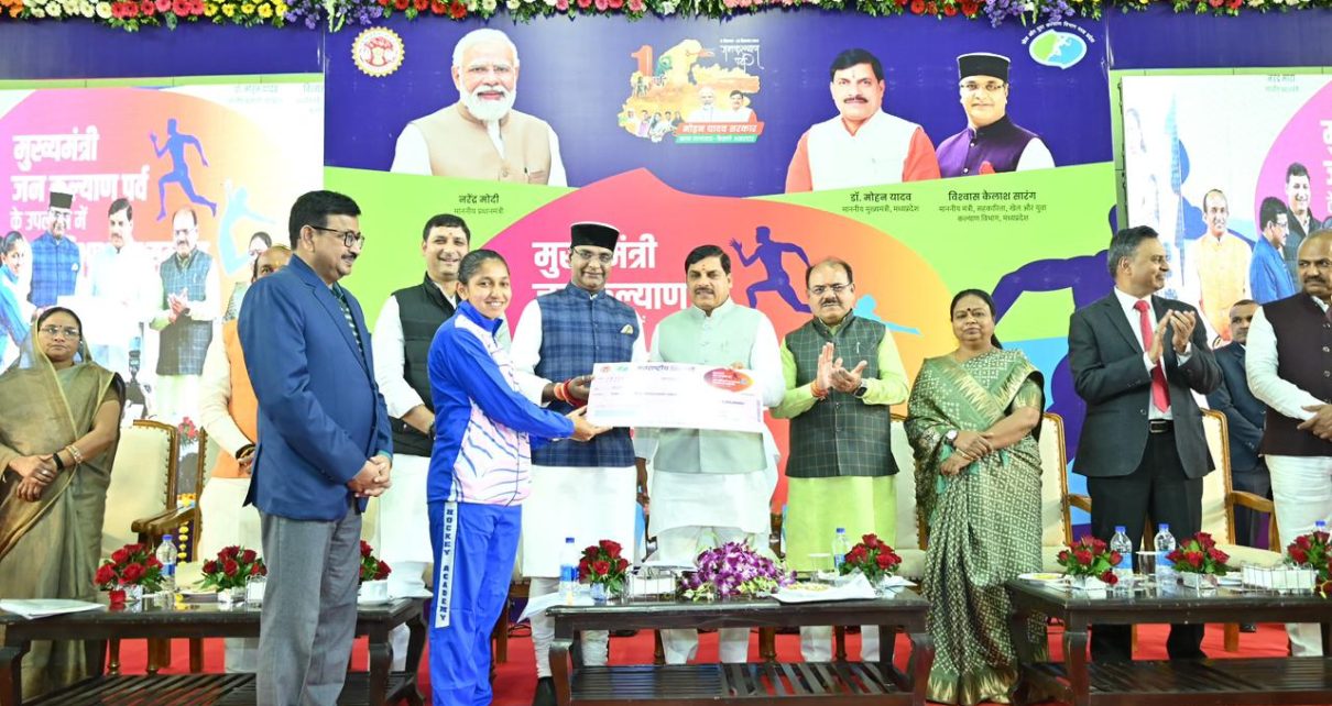 दतिया।दतिया की बेटी ने महिला हॉकी टीम की कप्तान गोल्ड मेडल जीतने पर मुख्यमंत्री एवं खेल मंत्री डेढ़ लाख का चैक वितरित किया।गौरतलब है कि दतिया की बेटी भारतीय जूनियर महिला हॉकी टीम की कप्तान ज्योति सिंह परिहार को बुधवार को भोपाल के टीटी नगर स्टेडियम में मुख्यमंत्री जन कल्याण अभियान 2024 कार्यक्रम के अंतर्गत मुख्यमंत्री डॉ मोहन यादव और खेल मंत्री विश्वास सारंग ने एशिया कप में गोल्ड मेडल जीतने पर डेढ़ लाख रुपए का चेक प्रदान कर सम्मानित किया,ज्योति परिहार की विशेष उपलब्धि पर जिला खेल अधिकारी डॉ अरविंद सिंह राणा जी एवं खेल समन्वयक संजय रावत खेल प्रशिक्षक राजेंद्र तिवारी ने बधाई प्रदान किए।
