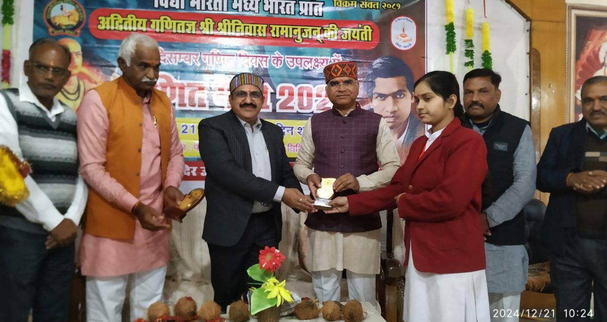 दतिया।श्री निवास रामानुजन अयंगर की 136 वीं जयंती के उपलक्ष्य में शनिवार को सरस्वती विद्या मंदिर उच्चतर माध्यमिक विद्यालय में गणित मेले का आयोजन किया गया।इस गणित मेले में( विद्या भारती मध्य भारत प्रांत के संगठन मंत्री) निखिलेश महेश्वरी मुख्य अतिथि के रूप में उपस्थित रहे एवं महेंद्र सिंह रघुवंशी (विद्या भारती सह सचिव ), गुरुचरण गौड़ ( विभाग समन्वयक शिवपुरी विभाग), डॉ सुभाष कौशिक( पीजी कॉलेज भौतिक शास्त्र प्रोफेसर) विशिष्ट अतिथि के रूप में उपस्थित रहे| कार्यक्रम का शुभांरभ मुख्य अतिथि एवं विशिष्ट अतिथियों द्वारा मां सरस्वती के समक्ष दीप प्रज्वलन कर एवं सरस्वती वंदना के साथ हुआ| सरस्वती वंदना के उपरांत विद्यालय के प्राचार्य/प्रबंधक मनोज गुप्ता द्वारा अतिथि परिचय कराया गया।अतिथि परिचय के पश्चात उन्होंने बताया कि आज हम श्री निवास रामानुजन की जयंती बनाने के लिए आज हम सभी यहां पर एकत्रित हुए हैं उनकी जयंती हम भरतगढ़ विद्यालय पर गणित मेले के रूप में मानते हैं| उन्होंने यह भी बताया कि इस गणित मेले की शुरुआत आज से 14 वर्ष पहले सरस्वती विद्या मंदिर उच्चतर माध्यमिक विद्यालय भरतगढ़ से हुई चार-पांच वर्षों तक गणित मेले का आयोजन होने के पश्चात प्रांतीय क्षेत्रीय एवं अखिल भारतीय अधिकारियों द्वारा सन 2016 में देशभर के विद्या भारती एवं अन्य क्षेत्रों के विशेषज्ञों को बुलाकर मेले का अवलोकन कराया गया तब उसके बाद यह तय किया गया की श्रीनिवास रामानुजन की जयंती को गणित मेले के रूप में सभी विद्यालयों में मनाएंगे ऐसी सूचना केंद्र सरकार द्वारा सभी विद्यालयों को सूचना दी गई तब से 22 दिसंबर को श्रीनिवास रामानुजन की जयंती गणित मेले के रूप में मनाई जाती है।अतिथि परिचय के पश्चात अतिथि स्वागत हेतु राम गोपाल शर्मा (कार्यक्रम प्रभारी ) एवं सुरेश यादव (जिला संयोजक वैदिक गणित) द्वारा अतिथियों का मंगल तिलक कर श्रीफल भेंट किया गया| इसके पश्चात संगीत आचार्य विनोद पुरोहित एवं विद्यालय की बहनों द्वारा एक सुंदर गीत प्रस्तुत किया गया जीत की समाप्ति के पश्चात कार्यक्रम की संपूर्ण भूमिका कृष्ण मुरारी साहू (वैदिक गणित प्रांतीय प्रमुख) द्वारा रखी गई| इस कार्यक्रम में भैया बहनों द्वारा निर्मित हस्तलिखित पत्रिका का विमोचन मुख्य अतिथि निखिलेश माहेश्वरी द्वारा किया गया तथा इसके पश्चात भैया शिवम प्रजापति द्वारा एक प्रेरणास्पद प्रेरक गीत प्रस्तुत किया गया| इसके पश्चात मुख्य अतिथि निखिलेश माहेश्वरी द्वारा श्रीनिवास रामानुजन के संपूर्ण जीवन चरित्र के बारे में बताया गया एवं उनके द्वारा बताया गया कि जहां चाह होती है वहां राह मिल जाती है आज श्रीनिवास रामानुजन की जयंती है एवं राष्ट्रीय गणित दिवस मना रहे हैं गणित 