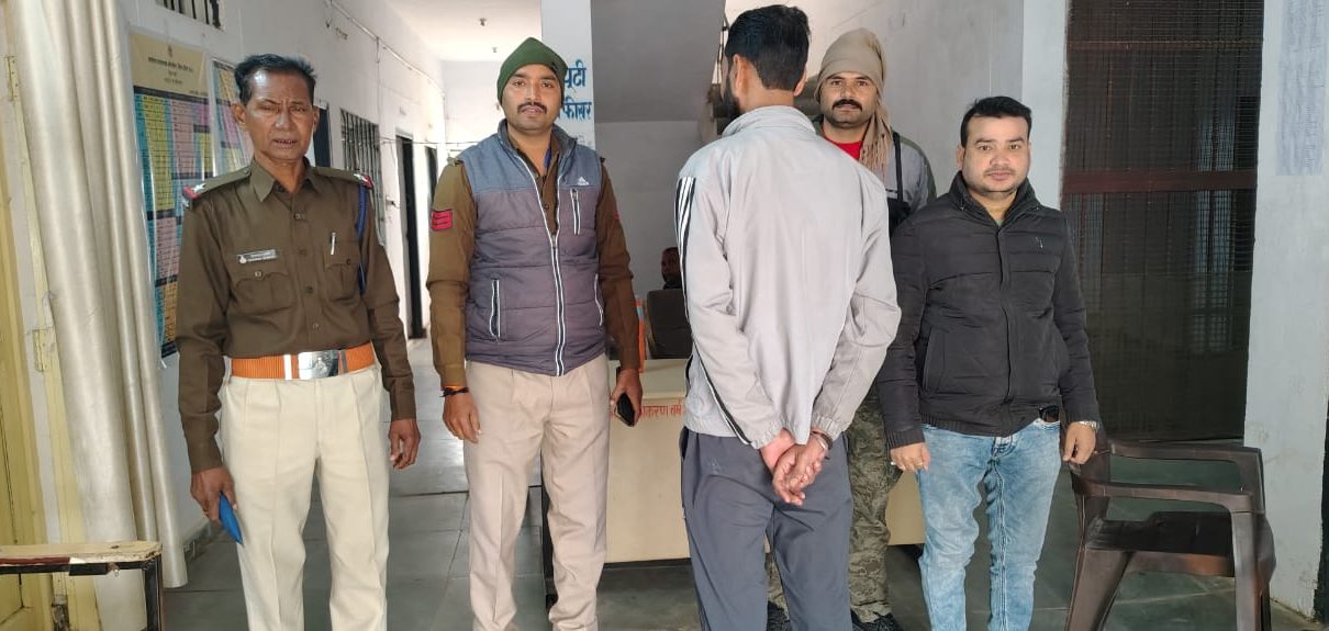 दतिया।पुलिस अधीक्षक वीरेन्द्र कुमार मिश्रा एवंअतिरिक्त पुलिस अधीक्षक सुनील कुमार शिवहरे के निर्देशन में वं एसडीओपी प्रियंका मिश्रा के मार्गदर्शन में पुलिस ने सोमवार को न्यायालय दतिया के प्रकरण क्रमांक 1079/19, अप.क्र. 486/18 के आरोपी स्थाई वारंटी अमर रावत पुत्र सीताराम रावत निवासी बगर की हवेली दतिया को कुईया पुरा पानी की टंकी दतिया से गिरफ्तार किया। उक्त सम्पूर्ण कार्यवाही में–निरीक्षक धीरेन्द्र मिश्रा थाना प्रभारी कोतवाली, सउनि सियाराम शाक्य, , प्रआर पुष्पेंद्र परिहार, प्रआर नीरज भदकारिया आर गोबिंद भदोरिया कमलेश नागर,आर गजेन्द्र राजावत , आर.हेमंत प्रजापति की सराहनीय भूमिका रही।