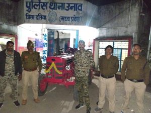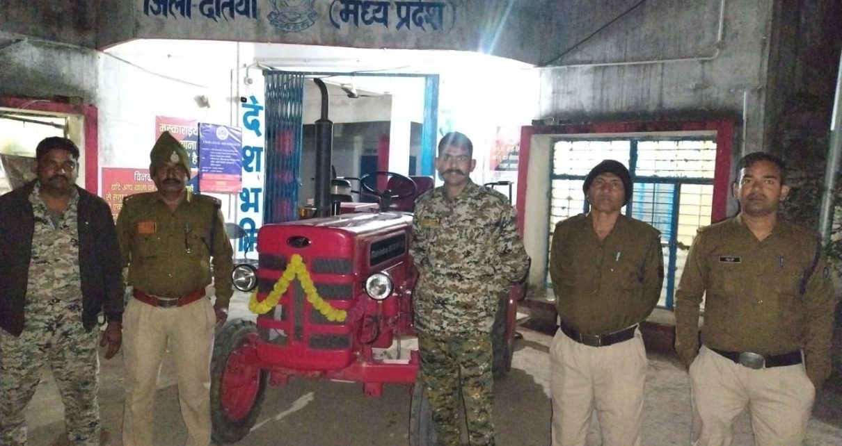दतिया।पुलिस अधीक्षक वीरेन्द्र कुमार मिश्रा के निर्देशन में एवं अति. पुलिस अधीक्षक सुनील शिवहरे वं एसडीओपी भाण्डेर कर्णिक श्रीवास्तव के मार्गदर्शन में थाना प्रभारी भास्कर शर्मा और उनकी टीम ने ग्राम इकारा से खेत से चोरी गए महेन्द्रा ट्रैक्टर को मय आरोपी कल्ला उर्फ महेन्द्र प्रताप सिंह गुर्जर नि. महाराजपुरा थाना सिविल लाईन को किया गया गिरफ्तार। थाना प्रभारी भास्कर शर्मा ने बताया कि आवेदक संतोष पुत्र अतरसिंह यादव नि. ग्राम सिमरा थाना रक्सा जिला झासी उ.प्र. के द्वारा पुलिस अधीक्षक के कार्यालय में ग्राम इकारा से रामकुमार कटारे के खेत से अपना महेन्द्रा ट्रैक्टर 265 चोरी हो जाने बाबत आवेदन दिया था।आवेदन पत्र की जाँच पर से आरोपी कल्ला उर्फ महेन्द्र प्रताप सिंह गुर्जर नि. महाराजपुरा थाना सिविल लाईन के विरुद्ध अपराध कायम कर विवेचना में लिया गया।दौराने विवेचना आरोपी को गिरफ्तार कर आरोपी के कब्जे से एक 265 महेन्द्रा लाल रंग का ट्रेक्टर बरामद किया गया,आरोपी आदतन अपराधी है जिस पर दतिया जिले के थाना सिविल लाइन, थाना दुरसडा, थाना इन्दरगढ़ में भी चोरी के अपराध पंजीबद्ध है।आरोपी से अभी और ट्रेक्टर बरामद होने की संभावना है।उक्त सपूर्ण कार्यवाही में थाना प्रभारी उनाव श्री भास्कर शर्मा ‘सउनि नीरज सिंह प्र. आर. मुकेश सगर आर. भूपेन्द्र सिंह. आर लोकेन्द्र सिंह ,आर मुनेश बघेल,आर अनूप शर्मा आर मोहित शर्मा आर पकज उदैनिया व आर चालक कुलदीप जादौन की सराहनीय भूमिका रही।