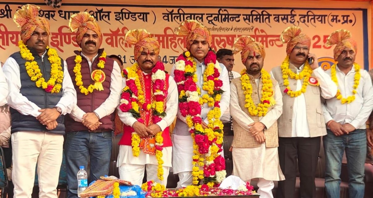 दतिया।गुरुवार को दतिया विधानसभा क्षेत्र के ग्राम बसई भाजपा कार्यकर्ताओं के द्वारा भारतीय जनता पार्टी दतिया के नव नियुक्त जिला अध्यक्ष रघुवीर कुशवाहा का प्रथम नगर आगमन पर भाजपा कार्यकर्ताओं ने पुष्प वर्षा एवं आतिशबाजी कर जोरदार स्वागत किया, भाजपा जिला अध्यक्ष रघुवीर कुशवाहा के साथ भाजपा जिला मंत्री अतुल भूरे चौधरी जिला पंचायत अध्यक्ष प्रतिनिधि धीरू दांगी जनपद अध्यक्ष प्रतिनिधि बृजेश यादव पूर्व जनपद अध्यक्ष प्रतिनिधि सतीश यादव उदगुवा मंडल अध्यक्ष हरीराम पाल वसई मंडल अध्यक्ष पीताराम लोधी का भी भाजपा कार्यकर्ताओं ने पुष्पमाला पहनकर स्वागत किया, इसके पश्चात ग्राम बसई में आयोजित अखिल भारतीय वॉलीबॉल टूर्नामेंट में भाजपा जिला अध्यक्ष सहित सभी भाजपा जनप्रतिनिधि और पदाधिकारी टूर्नामेंट में अतिथि के तौर पर शामिल हुए और मैच की टीम के वॉलीबॉल खिलाड़ियों से परिचय कर टूर्नामेंट के मैच का शुभारंभ कराया, वॉलीबॉल टूर्नामेंट के आयोजको के द्वारा सभी अतिथियों का सौपा पहनकर और शाल श्रीफल से स्वागत किया।इस मौके पर साथ में पुष्पेंद्र रावत सीताराम गुप्ता आशीष तिवारी महेश लोधी देवेंद्र राजपूत प्रवीण पाठक नीतू यादव कुलदीप यादव पवन पहारिया विनोद अहिरवार मानसिंह कुशवाह प्रदीप गुर्जर अतुल शर्मा कल्लू कुशवाह मुकेश पाठक विनोद यादव आलोक तिवारी मातादीन लोधी पुष्पेंद्र ठाकुर अंकित राजपूत सुमित गुप्ता राजपूत भगवान दास पटेल देवा लाल पटेल रविंद्र पटेल अर्पित तिवारी भारत लोधी उत्तम राजपूत रूपसिंह लोधी विनोद राजपूत लाल सिंह लोधी संजीव लोधी चंदन सिंह लोधी देवीलाल आदिवासी प्रतिपाल सिंह प्रशांत लोधी सुनील अहिरवार राजू अहिरवार सहित बड़ी संख्या ग्रामीण जन स्वागत कार्यक्रम में शामिल रहे।