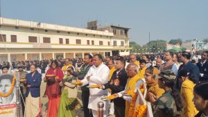 Sultanpur| मन्दिर वरिष्ठ माध्यमिक विद्यालय ज्ञान कुंज विवेकानंद नगर सुलतानपुर में 76 वां गणतंत्रदिवस हर्षोल्लास के साथ मनाया गया। कार्यक्रम का शुभारम्भ विद्यालय के ही पूर्व छात्र मुख्य अतिथि किंग जॉर्ज मेडिकल कॉलेज के ट्रामा सेण्टर के प्रोफेसर डाक्टर वैभव जायसवाल द्वारा झण्डारोहण के साथ हुआ। आमंत्रित अतिथियों ने भारत माता की आरती भी की। विद्यालय के प्रधानाचार्य राकेश मणि त्रिपाठी ने मंचासीन अतिथियों का परिचय कराया।तथा गणतंत्रदिवस के पावन अवसर पर अपनी हार्दिक शुभकामनाएं देते हुए कहा कि राष्ट्र हित सर्वोपरि है। संविधान की मूल भावना के सम्मान में राष्ट्र भक्ति, राष्ट्रसेवा ,राष्ट्र रक्षा में रत रहकर राष्ट्रीय हितों के प्रति सजग रहना प्रत्येक नागरिक का नैतिक दायित्व है।