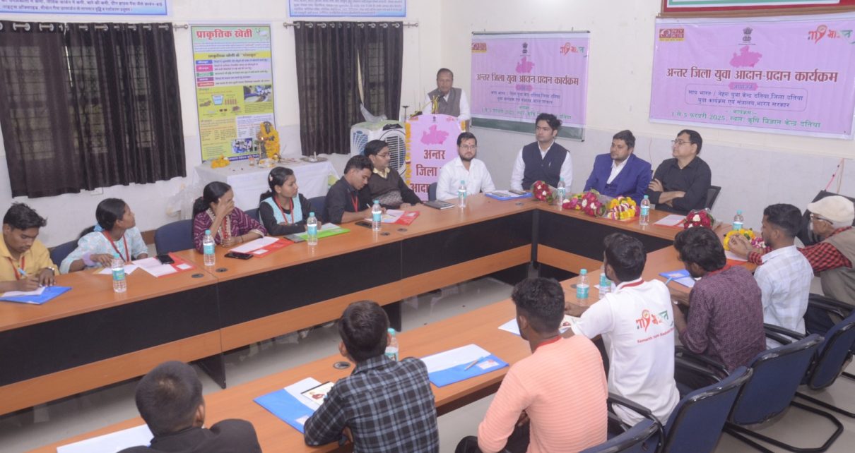 दतिया।भारत सरकार द्वारा प्रदत्त निर्देशानुसार नेहरू युवा केंद्र दतिया द्वारा 1 से 5 फरवरी के मध्य अंतर जिला युवा आदान- प्रदान कार्यक्रम का आयोजन किया जा रहा है। जिसमें बालाघाट जिले के 27 युवा दतिया जिले की संस्कृति, परिवेश व इतिहास को जानने की दृष्टि से आए हैं। आयोजित 5दिवसीय कार्यक्रम के शुभारंभ समारोह में अतिथियों ने माँ सरस्वती की प्रतिमा पर दीप प्रज्वलन व माल्यार्पण कर किया साथ ही अतिथियों का स्वागत बालाघाट के प्रतिभागियों ने किया।नेहरू युवा केंद्र दतिया युवा कार्यक्रम खेल मंत्रालय भारत सरकार द्वारा आयोजित अंतर जिला आदान प्रदान कार्यक्रम के शुभारंभ समारोह में मुख्य अतिथि वरिष्ठ पुलिस अधीक्षक वीरेन्द्र कुमार मिश्रा (आईपीएस) द्वारा उपस्थित युवा प्रतिभागियों को दतिया के बारे में अधिक से अधिक जानने हेतु प्रेरित किया।श्री मिश्रा ने युवाओं से राष्ट्रनिर्माण की गतिविधियों में जुड़कर स्वयं, परिवार व राष्ट्र के विकास में साँझीदार बनने का आव्हान किया। साथ ही शोधार्थी बनने की बात कही।कार्यक्रम के विशिष्ट अतिथि शांतनु अग्रवाल मैनेजिंग ट्रस्टी, रावतपुरासरकार इंस्टिट्यूट ने युवाओं से लक्ष्य निर्धारित कर पूरे मन से प्रयास करने की बात कही। बालाघाट के युवा दल को उन्होंने एक्सपोजर के दौरान SRI भ्रमण करने हेतु आमंत्रित किया।अध्यक्षता कर रहे कृषि विज्ञान केन्द्र के प्रभारी वरिष्ठ वैज्ञानिक डॉ. अवधेश सिंह ने युवाओं से कृषि के क्षेत्र में नवाचार करते हुए विकास में सहभागी बनने की बात कही। शुभारंभ कार्यक्रम में सफल संचालन करते हुए रामजीशरण राय सदस्य बाल कल्याण समिति ने युवाओं से सामुदायिक गतिविधियों के माध्यम से विकसित भारत की कल्पना को साकार करने की अपील की।बालाघाट जिले से आये हुए सभी युवाओं को ट्रैक सूट, प्रशिक्षण किट वरिष्ठ पुलिस अधीक्षक वीरेन्द्र कुमार मिश्रा द्वारा प्रदान कि गयी। कार्यक्रम में द्वितीय सत्र में विनोद मिश्रा सदस्य जिला पुरातत्व एवं संस्कृति परिषद द्वारा सभी युवाओं को बुंदेलखंड, पीतांबरा मंदिर और दतिया के इतिहास से परिचित कराया। ततपश्चात डॉ. निलय गोस्वामी प्राचार्य शासकीय स्नातकोत्तर महाविद्यालय इंदरगढ़ द्वारा युवा क्या है? युवा की परिभाषा और युवाओं के संकल्प से अवगत कराते हुए बताया कि वे अपने योगदान से क्षेत्र के विकास में अपनी अहम भूमिका कैसे अदा कर सकते है। कार्यकम मे पुरतातावः व पुराने सिक्कों कि जानकारी राधावालभ मिश्रा जी द्वारा दी गयी।कार्यक्रम में अभिषेक लिटोरिया, सुनील दांगी, उपेंद्र यादव, निखिल, विशाल आदि वोलेंटियर उपस्थित रहे। कार्यक्रम में अतिथियों व विषय विशेषज्ञों का आभार नेहरू युवा केंद्र के लेखा व कार्यक्रम सहायक गौर