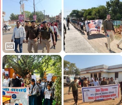 दतिया।साइबर सुरक्षा अभियान के तहत दतिया पुलिस अधीक्षक वीरेन्द्र कुमार मिश्रा एवं अति पुलिस अधीक्षक सुनील कुमार शिवहरे के निर्देशन में मंगलवार को थाना कोतवाली और इंदरगढ़ थाना क्षेत्र में साइबर सुरक्षा रैली का आयोजन किया गया। इस रैली में थाना कोतवाली और थाना इंदरगढ़ पुलिस के साथ स्कूल के विद्यार्थियों ने सक्रिय भागीदारी निभाई। विद्यार्थियों ने अपने हाथों में बैनर और पंपलेट्स लेकर साइबर सुरक्षा से जुड़े प्रेरक संदेशों का प्रचार किया। रैली के माध्यम से दतिया पुलिस ने सभी नागरिकों को यह संदेश दिया कि, साइबर अपराध से सतर्क रहे। किसी भी लालच में न आए और ठगी के शिकार होने से बचे।दतिया शहर में एसडीओपी विनायक शुक्ला एवं थाना प्रभारी कोतवाली निरीक्षक धीरेंद्र मिश्रा ने होली हार्टपब्लिक/ इंटरनेशनल स्कूल दतिया एवं न्यू दतिया पब्लिक स्कूल दतिया के विद्यार्थियों के साथ मिलकर सायबर फ्रॉड से बचने के लिए जनजागरुकता रैली का शुभारंभ ठंडी सड़क से होकर किला चौक, सब्जी मंडी से निकाल कर ठंडी सड़क पर समापन हुआ। इस दौरान लगभग 500 विद्यार्थी एवं संचालक डॉक्टर आलोक सोनी, अनुभव राय सहित शिक्षकगण मौजूद रहे।थाना प्रभारी इंदरगढ़ वैभव गुप्ता द्वारा इंदरगढ़ कस्बे में सीएम राइज स्कूल के बच्चों एवं शिक्षकों के साथ सायबर जागरूकता रैली निकाली गई।इसके साथ थाना प्रभारी भांडेर विनीत तिवारी एवं पुलिस टीम ने पटेल चौराहा भांडेर पर, थाना प्रभारी धीरपुरा भूपेंद्र सिंह जाट ने पुलिस टीम के साथ में शासकीय स्कूल ग्राम लेतरा में, थाना प्रभारी जिगना नीरज कुमार ने पुलिस टीम के साथ में हाइस्कूल ग्राम सनोरा में, थाना प्रभारी सेवढ़ा इंचार्ज जितेंद्र सिंह सिकरवार एवं पुलिस टीम ने ग्राम दावनी, थाना प्रभारी चिरूला नितिन भार्गव एवं पुलिस टीम ने चिरूला में, थाना प्रभारी उनाव भास्कर शर्मा एवं पुलिस टीम ने ग्राम तरगुवां में,सरसई थाना प्रभारी नरेंद्र सिंह राजपूत ने शासकीय स्कूल में,थाना प्रभारी बड़ौनी एवं पुलिस टीम ने सीएम राइज स्कूल बड़ौनी में, थाना प्रभारी सिविल लाइन सुनील वनोरिया एवं पुलिस टीम ने शासकीय उच्चतर माध्यमिक विद्यालय ग्राम बहादुरपुर में आमजन छात्र छात्राओं महिलाओं राहगीरों को साइबर सुरक्षा अभियान के तहत वीडियो के माध्यम से ऑनलाइन ठगी, फिशिंग और डिजिटल सुरक्षा के उपाय बताए गए, साइबर स्टॉकिंग, सोशल मीडिया पर सुरक्षित रहने के टिप्स और हेल्पलाइन नंबर 1930 की जानकारी दी।