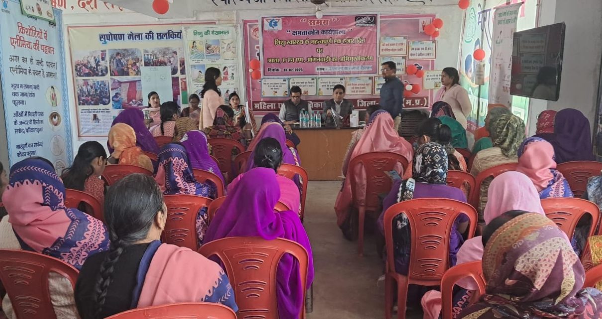 दतिया। गुरुवार को महिला बाल विकास एवं स्वास्थ्य विभाग के सहयोग से वात्सल्य क्राई संस्था द्वारा शिशु स्वास्थ्य के एक हजार महत्वपूर्ण दिन पर आशा आंगनबाड़ी कार्यकर्ताओं का एक दिवसीय प्रशिक्षण का आयोजन किया गया,जिसमें वात्सल्य की प्रशिक्षक डॉक्टर नीलम के द्वारा जानकारी दी गई,प्रशिक्षण मे जिला कार्यक्रम अधिकारी ने कहा कि कुपोषण को कम करने के लिए एक साथ मिलकर कार्य करना होगा और साथ ही आयरन सीरप के पिलाने एवं जिंक टेबलेट के बारे मे बतया गया और स्वस्थ्य विभाग से बी पी एम के द्वारा बताया गया कि HRP का चिन्हित और रेगुलर होम visit के बारे मे बतया गया मौके पर CDPO, सुपरवाइजर और वात्सल्य से दुर्गेश मिश्रा Chhotelal सहित कुल 50 प्रतिभागी उपस्थिति रहे lइस प्रशिक्षण का मुख्य उद्देश्य बच्चों में कुपोषण, कुपोषण की पहचान करना, चिन्हित करना और उन्हें समुदाय आधारित पोषण प्रबंधन में देखभाल और पोषण से होने वाली कमियों को पालकों को बताकर उन्हें समझाना है। जैसे असंतुलित अपर्याप्त, पौष्टिक भोजन न मिलने से बच्चों में बीमारियां, संक्रमण होने लगता है। जिससे बच्चों के स्वास्थ्य में अंतर आने लगता है।