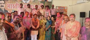 दतिया।बुधवार को ग्वालियर झांसी हाईवे रोड स्थित भाजपा जिला कार्यालय पर भाजपा ग्रामीण मंडल अध्यक्ष डॉ राजू त्यागी के द्वारा होली मिलन समारोह कार्यक्रम का आयोजन किया गया, जिसमें भजन संध्या का भी आयोजन किया गया, भजन संध्या के पश्चात भाजपा पदाधिकारी और कार्यकर्ताओं ने एक दूसरे को रंग गुलाल लगाकर होली की शुभकामनाएं दी, साथ ही गुलाब के फूलों की वर्षा कर भाजपा कार्यकर्ताओं ने होली खेली कार्यकर्ताओं ने भजन संध्या के दौरान स्वयं गीत गाकर होली मनाई रंग बरसे भीगे चुनरवाली रंग बरसे गीत भजन संध्या के कलाकारों द्वारा सुनाया गया, इस दौरान भाजपा जिला अध्यक्ष रघुवीर कुशवाह वरिष्ठ भाजपा नेता राधाकांत अग्रवाल भाजपा जिला मंत्री अतुल अतुल भूरे चौधरी प्रशात ढेगुला योगेश सक्सैना दिलीप बाल्मिक पंकज गुप्ता गोविंद ज्ञानानी पुनीत टिलवानी कुलदीप यादव पवन पहरिया हरिराम पाल विजय गुप्ता मीनाक्षी कटारे किरण टिलवानी अजय दुबे भज्जू राय सहित भाजपा कार्यकर्ता कार्यक्रम में मौजूद रहे।