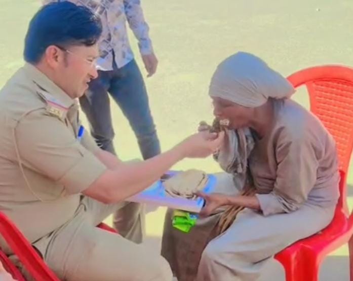 दतिया।पुलिस की मनमानी के किस्से तो अक्सर सुनने को मिल जाते हैं लेकिन एक पुलिस अधिकारी ने अपने दरियादिली से लोगों का दिल जीत लिया है।दतिया जिले के पुलिस विभाग के एक एएसआई गजेन्द्र भार्गव की एक तस्वीर सोशल मीडिया पर तेजी से वायरल हो रही है जिसमें वह एक मानसिक रोगी महिला को खाना खिलाते हुए दिखाई दे रहे हैं।जानकारी के अनुसार दतिया जिले के पंडोखर थाना क्षेत्र उड़ीना चौंकी के प्रभारी गजेन्द्र भार्गव है।नवरात्रि में रतनगढ़ माता मंदिर पर ड्यूटी पर तैनात हैं।इसी दौरान उन्होंने एक मानसिक रोगी महिला को चिलचिलाती धूप में घूम रही महिला को देखा। उन्होंने महिला को खाना दिया लेकिन जब गजेन्द्र भार्गव को लगा कि वह मानसिक रोगी महिला खुद से नहीं खा सकती तो उन्होंने कुर्सी पर बैठा कर अपने हाथों से उसे खाना खिलाना और।एएसआई की इस काम की लोगों ने जमकर तारीफ की।सोशल मीडिया विभिन्न प्लैटफॉर्म पर लोगों ने पुलिस अधिकारी के इस कदम की सराहना करते हुए लिखा कि ट्रैफिक पुलिस ऑफिसर को सैल्यूट, हमें ऐसे और लोगों की जरूरत है।वही महिला पुलिस अधिकारी को आशीर्वाद भी दिया।वही एएसआई गजेन्द्र भार्गव ने बताया कि महिला मानसिक रोगी है।चिलचिलाती धूप में घूम रही थी मैंने महिला को बुलाया और कुर्सी पर बैठा कर खाना खिलाया ।