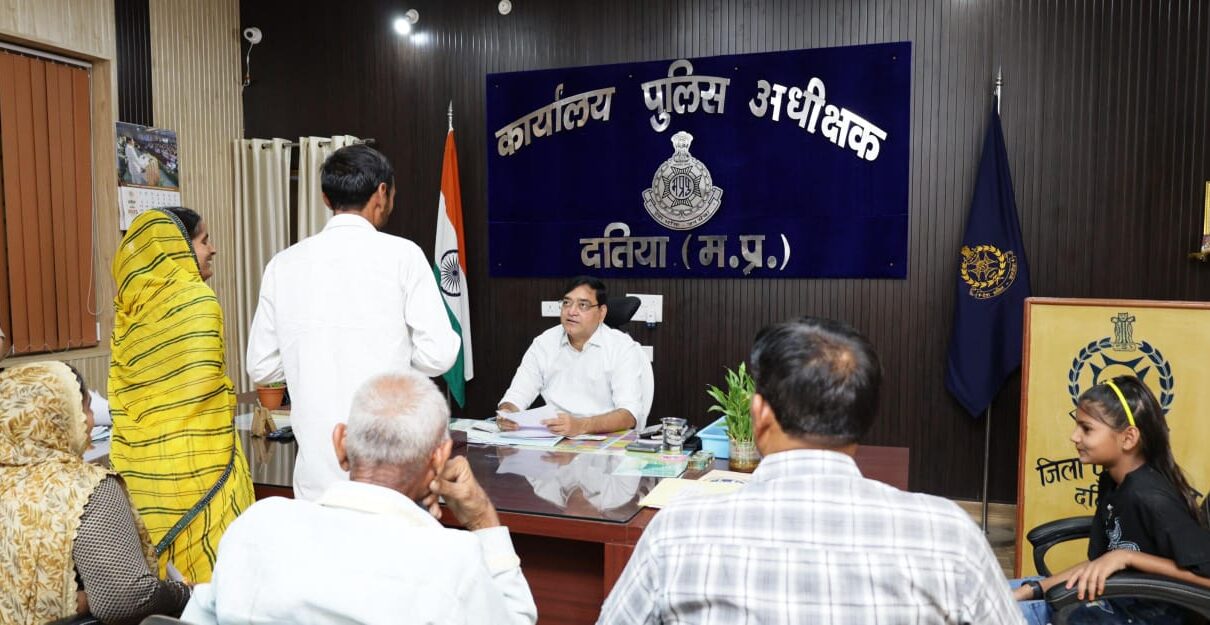 दतिया।पुलिस अधीक्षक वीरेन्द्र कुमार मिश्रा ने जनसुनवाई की। मंगलवार जनसुनवाई में विभिन्न थाना क्षेत्रों से आए आवेदको के द्वारा आवेदन पत्र समक्ष में प्रस्तुत किये गये, जिसे प्रत्येक आवेदकों से रू-ब-रू होकर उनकी शिकायतो को जनसुनवाई के माध्यम से गंभीरतापूर्वक सुना जाकर कई शिकायतो का मौके में निराकरण कराया गया तथा शेष आवेदन पत्र में वैधानिक कार्यवाही हेतु राजपत्रित अधिकारी पुलिस थाना प्रभारियों व चौकी प्रभारियो को निर्देशित किया गया।जनसुनवाई के दौरान उप निरीक्षक साधना शर्मा उपस्थित रहे।