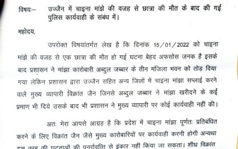 *बिग ब्रेकिंग हिन्द की स्याही से* विधायक आरिफ मसूद ने गृह मंत्री नरोत्तम मिश्रा को लिखा पत्र उज्जैन में घटना को लेकर लिखा पत्र *उज्जैन में हुई थी पतंग के मांझे से छात्रा की मोत गृह मंत्री ने दिए थे जाँच के आदेश* *पतंग व्यापारी अब्दुल जब्बार की तुरन्त गिरफ्तारी के बाद मकान तोड़ने के […]