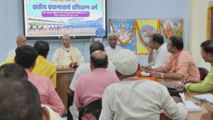 सरस्वती विद्या मन्दिर वरिष्ठ माध्यमिक विद्यालय ज्ञान कुंज विवेकानंद नगर में आयोजित प्रान्तीय प्रधानाचार्य प्रशिक्षण वर्ग में काशी प्रान्त के प्रधानाचार्यों को सम्बोधित करते हुए गंगा समग्र योजना के अखिल भारतीय संगठन मंत्री एवं वरिष्ठ प्रचारक श्रीमान् रामाशीष जी ने कहा कि संघ सन् 1925 से प्रारंभ हुआ।राष्ट्रीय स्वयंसेवक संघ की स्थापना के सौ वर्ष पूर्ण होने जा रहे हैं। संघ द्वारा 2025-26 को शताब्दी वर्ष के रूप में मनाने की योजना बनाई गई है। इस शताब्दी वर्ष में अखिल भारतीय स्तर पर सम्पूर्ण देश में एक साथ कार्यक्रम सम्पन्न होना है। पहला कार्यक्रम बस्ती एवं मण्डल स्तर पर 26 सितम्बर 2025 से 10 अक्टूबर तक आयोजित किया जाएगा। इसी प्रकार इन्हीं तिथियों पर 2026 में भी मण्डल एवं बस्ती स्तर पर कार्यक्रमों के माध्यम से समाज को जागरूक करने की योजना है।