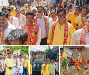 दतिया। भगवान श्री विश्वकर्मा का जन्मोत्सव दतिया में हर्षोल्लास और धार्मिक माहौल के बीच धूमधाम से मनाया गया। इस अवसर पर बड़े बाजार स्थित विश्वकर्मा मंदिर से भव्य शोभायात्रा का शुभारंभ हुआ। शोभायात्रा से पूर्व भगवान विश्वकर्मा का जलाभिषेक, पूजन, श्रृंगार और आरती की गई। समाज के लोगों ने नाचते-गाते और बैंड की धुन पर उल्लासपूर्वक भागीदारी निभाई।