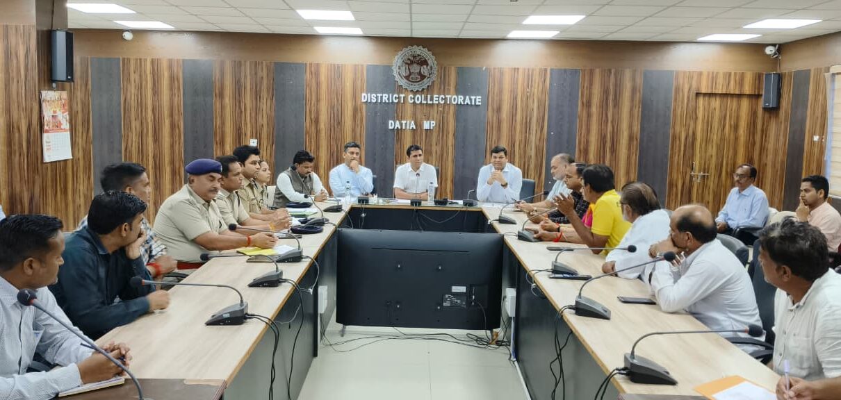 दतिया।आगामी शारदीय नवरात्रि, दशहरा एवं दीपावली पर्व को दृष्टिगत रखते हुए गुरुवार को जिला कलेक्ट्रेट के सभाकक्ष में कलेक्टर श्री स्वप्निल वानखडे की अध्यक्षता में शांति समिति की बैठक का आयोजन किया गया। बैठक के दौरान भाजपा जिलाध्यक्ष रघुवीरशरण कुशवाहा, पुलिस अधीक्षक सूरज कुमार वर्मा उपस्थित रहे। बैठक में आगामी त्यौहारों के आयोजन में कानून व्यवस्था, बिजली, पानी, साफ-सफाई एवं यातायत व्यवस्था के सुचारू संचालन के लिए कलेक्टर द्वारा संबंधित अधिकारियों को दिशा निर्देशित किया गया।कलेक्टर श्री वानखडे द्वारा नवरात्रि के दौरान बड़ी माता मंदिर पर लगने वाले मेले एवं पीताम्बरा पीठ पर श्रृद्धालुओं के अत्याधिक आवागमन को दृष्टिगत रखते हुए पीडब्लूडी को वेरीकेटिंग करने, नगर पालिका सीएमओ साफ-सफाई व्यवस्था सुदृढ़ रखने एवं यातायात प्रभारी को पार्किग एवं यातायत व्यवस्था के सुचारू संचालन रखने के निर्देश दिए। उन्होंने अनुविभागीय अधिकारी दतिया संतोष तिवारी को बड़ी माता मंदिर पर आठ नवीन कैमरा सेट लगाने के निर्देश दिए। साथ ही उन्होंने निर्देशित किया मेले के दौरान कोई भी दुकानदान अपनी दुकान की सीमा से बाहर दुकान नहीं लगाये अन्यथा जुर्माने की कार्यवाही की जायेगी।बैठक के दौरान उपस्थित समाजसेवियों द्वारा खैरी माता मंदिर पर सप्तमी एवं खटीक समाज द्वारा काली माता की स्थापना एवं भव्य विसर्जन यात्रा की जानकारी प्रदान की गई। जिस पर कलेक्टर श्री वानखडे द्वारा अधिकारियों को निर्देशित किया कि श्रृद्धालुओं को किसी भी प्रकार की समस्या न हो यह सुनिश्चित किया जाये साथ ही सड़कोें पर माता के पंडाल न लगाने के लिए उपस्थित समिति सदस्यों को आवश्यक निर्देश दिए।उन्होेंने दशहरा चल समारोह के दौरान पर्याप्त रोशनी की व्यवस्था करने के निर्देश मुख्य नगर पालिका अधिकारी को दिए।उन्होंने कहा कि चल समारोह में किसी भी प्रकार की भगदड़ न हो यह सुनिश्चित किया जाये। महिलाओं की आम दिवस की अपेक्षा नवरात्रि में मंदिरों पर अत्याधिक उपस्थिति को ध्यान में रखते हुए कलेक्टर श्री वानखडे द्वारा ‘‘स्वस्थ्य नारी, सशक्त परिवार’’ के अंतर्गत सभी बड़े धार्मिक स्थलों पर नवरात्रि के दौरान हैल्थ चैकअप कैंप लगाने की बात कही। जिस पर बैठक उर्पिस्थत विभिन्न समुदायों के प्रतिनिधियों द्वारा तालियां बजाकर इस पहल का स्वागत किया।बैठक के दौरान पुलिस अधीक्षक सूरज कुमार वर्मा ने कहा कि आप सभी के सहयोग एवं आपसी प्रेम से अभी तक समस्त आयोजन शांति पूर्वक सम्पन्न हुए है।आशा है कि आने वाले त्यौहार भी आप इसी प्रकार सद्भावना के साथ मनायें। उन्होंने बैठक के दौरान उर्पिस्थत समाज सेवियों एवं समिति सदस्यों से कहा कि बाजार के प्रमुख मार्ग