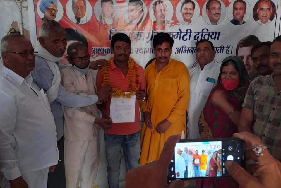 मध्य प्रदेश अनुसूचित जाति प्रकोष्ठ के प्रदेश अध्यक्ष श्रीमान सुरेंद्र सिंह चौधरी, द्वारा आज दिनांक 3/8/2021 को दतिया जिला कांग्रेस कार्यालय पर अनुसूचित जाति जिलाध्यक्ष बी, एल, केन, एबं मध्य प्रदेश संयोजक अनु सूचित जाति खुमान सिंह बेचैन की अनुसंसा पर आज मुझे अनुसूचित जाति युवा जिलाध्यक्ष बनाया गया है जिसमे में समस्त सीनियर नेताओं का आभार प्रकट करता हूँ जिला कांग्रेस पर उपस्थित लोगो में जिलाध्यक्ष अशोक दांगी बगदा,गुरुदेव शरण गुप्ता,ऊषा नहार,प्रदीप गुर्जर, गुड्डी जाटब,नारायण सिंह बाबूजी,बासुदेव सरपंच कमरिया, जगन्नाथ अहिरवार,पातिराम पाल फौजी,कमलेश सेठी साहू,बिक्रम दांगी सिंधबारी,अशोक श्रीवास्तव जिला मीडिया चेयरमैन दतिया, बिक्रम दांगी तेड़ौत,परवेन्द्र सिंह गुर्जर,महेंद्र प्रजापति,कमल सिंह यादव,रामदास उत्साही,रामबीर दांगी,गुड्डन कमरिया,मोहन कुशवाहा,अलीम पठान, रामनिवास शर्मा उरया,मनोज दांगी,जसबंत सिंह पाल,दीपक पाल,पुष्पेंद्र गुर्जर,रिंकू यादव, मनोज चौबे,स्वादेश अहिरवार, गोलू अहिरवार,प्रहलाद दांगी, मोनू रायकबार,राजकुमार अहिरवार,बलबीर कुशवाहा, कोमल अहिरवार आदि कांग्रेसी कार्यकर्ता उपस्थित थे