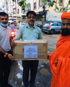 शहर के समाजसेवी हेमंत निगम वाह अभिषेक शर्मा ने बच्चों के लिये पारले-जी बिस्किट का एक बॉक्स, ऋषभदेव आनंद महाराज जी के साथ रवाना किया गया