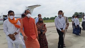 दतिया। मुख्यमंत्री शिवराज सिंह चौहान वायुयान से मंगलवार को दतिया पहंुचे। जहां से आप हैलीकाॅप्टर द्वारा ओरछा जिला निवाडी के लिए रवाना हुए। दतिया हवाई पट्टी पहुंचने पर लोक निर्माण राज्यमंत्री एवं जिले के प्रभारी मंत्री सुरेश धाकड़ (राठखेड़ा) ने अगवानी की। लोक निर्माण विभाग, कुटीर एवं ग्रामोद्योग मंत्री गोपाल भार्गव मुख्यमंत्री के साथ दतिया पहुंचे। मुख्यमंत्री के साथ भार्गव एवं श्री धाकड़ (राठखेड़ा) हैलीकाॅप्टर द्वारा ओरछा जिला निवाड़ी के लिए रवाना हुए। मुख्यमंत्री श्री चैहान ने हवाई पट्टी पर उपस्थित जनप्रतिनिधियों एवं प्रशासनिक अधिकारियों से बाढ़ से प्रभावित लोगों के पुर्नवास एवं राहत कार्य की जानकारी ली। हवाई पट्टी पर भाजपा जिलाध्यक्ष, भाण्ड़ेर विधानसभा क्षेत्र की विधायक श्रीमती रक्षा संतराम सिरौनिया, पूर्व विधायक घनश्याम पिरौनिया, भाजपा नेता सुनील तिवारी, संभाग आयुक्त ग्वालियर आशीष सक्सैना, चंबल रेंज के आईजी सचिन अतुलकर, कलेक्टर संजय कुमार, पुलिस अधीक्षक अमन सिंह राठौर, डाॅ. रामजी खरे, सुनीत तिवारी, रामबहादुर सिंह गुर्जर, जीतू कमरिया, बंटी धाकड़ आदि उपस्थित थे।