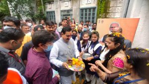 दरअसल स्कूल की बच्चियाँ मंत्री डॉक्टर मिश्रा के स्वागत के लिए आरती लेकर वहाँ खड़ी थी।