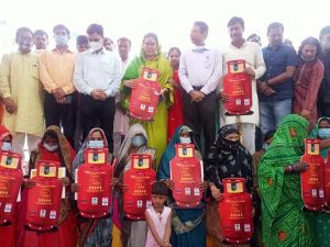 भाजपा युवा नेता विवेक मिश्रा ने दतिया और बडोनी में जरुरतमंद महिलाओं को वितरित किये गैस सिलेंडर
