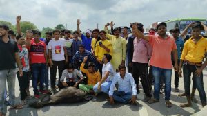 झाँसी-ग्वालियर हाइवे पर गौ सेवकों ने सीतापुर में किया चक्काजाम
