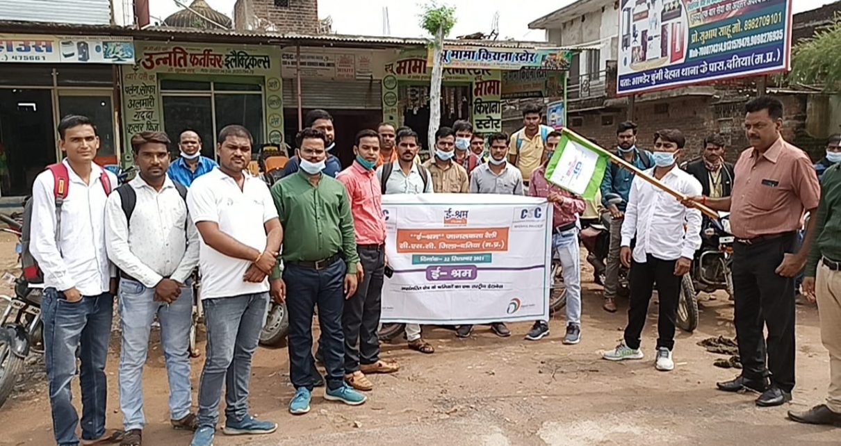 ई श्रमिक जागरूकता रैली में उपस्थित रहे। आशीष ठाकुर सीएससी डीएम, दीपू राजपूत सीएससी डीएम , संदीप कुशवाहा सीएससी डीएस, मोनू राहुल आनंद आकाश पवन अजय जितेंद्र भारत नीलेश अरविंद बृजेंद्र एवं समस्त सीएससीबी VLE दतिया उपस्थित