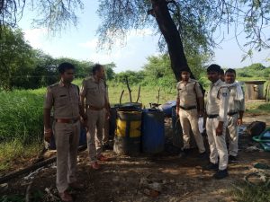 दतिया।कंजर डेरा पर बन रही अवैध कच्ची शराब पर पण्डोखर एवं गोदन पुलिस ने मारा छापा। पुलिस अधीक्षक अमन सिंह राठौड़ के द्वारा अवैध शराब के विरुद्ध चलाये जा रहे अभियान के तहत अतिरिक्त पुलिस अधीक्षक कमल मौर्य के मार्गदर्शन व एसडीओपी भाण्डेर मोहित यादव के पर्यवेक्षण में थाना प्रभारी पण्डोखर विजयसिंह लोधी एवं थाना प्रभारी गोदन यदुनाथ सिंह तोमर की संयुक्त कार्यवाही में मय फोर्स के गुरुवार को कंजर डेरा समथर तिराहा पण्डोखर पर दबिस दी गई जिसमें करीबन 05 हजार लीटर कच्ची लहान नष्ट की गई एवं मोके पर करीबन 120 लीटर हाथ भट्टी की बनी शराब तीन केनो में रखी मिली जिसे जप्त कर कार्यवाही की गई। उक्त कार्यवाही में थाना प्रभारी पण्डोखर विजय सिंह लोधी थाना प्रभारी गोदन यदुनाथ सिंह तोमर सउनि राजेन्द्र सिंह , प्र.आर. स्वामीप्रसाद , प्र.आर. रामकेश पाल आर . हरिमोहन कुशवाह आर . रविकांत आर . महेश कौरव महिला आर . मंजू रावत की सराहनीय भूमिका रही।