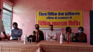 दतिया|राष्ट्रीय विधिक सेवा प्राधिकरण, नई दिल्ली एवं म0प्र0 राज्य विधिक सेवा प्राधिकरण, जबलपुर के निर्देाानुसार एवं माननीय जिला न्यायाधीा एवं अध्यक्ष महोदय श्री आर.पी. शर्मा के निर्देशानुसार एवं अपर जिला न्यायाधीश एवं सचिव जिला विधिक सेवा प्राधिकरण श्री मुकेश रावत के मार्गदर्शन में आज दिनांक 25.09.2021 को जिला विधिक सेवा प्राधिकरण दतिया द्वारा अलग-अलग स्थानों पर विधिक साक्षरता शिविर का आयेाजन किया गया ।