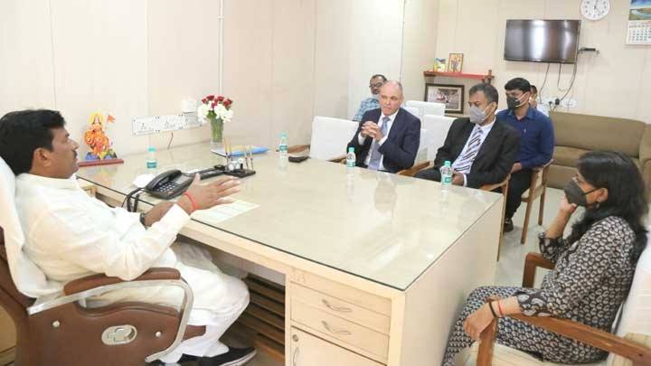 उद्यानिकी एवं खाद्य प्र-संस्करण राज्य मंत्री (स्वतंत्र प्रभार) श्री भारत सिंह कुशवाह से नीदरलैण्ड के काउंसिल जनरल श्री बार्ट डी. जोंग ने बुधवार को मंत्रालय में भेंट की। प्रमुख सचिव उद्यानिकी श्रीमती कल्पना श्रीवास्तव, एम.डी. एम.पी. एग्रो श्री श्रीकांत बनोट और आयुक्त उद्यानिकी श्री एम.के. अग्रवाल भी इस अवसर पर उपस्थित थे।