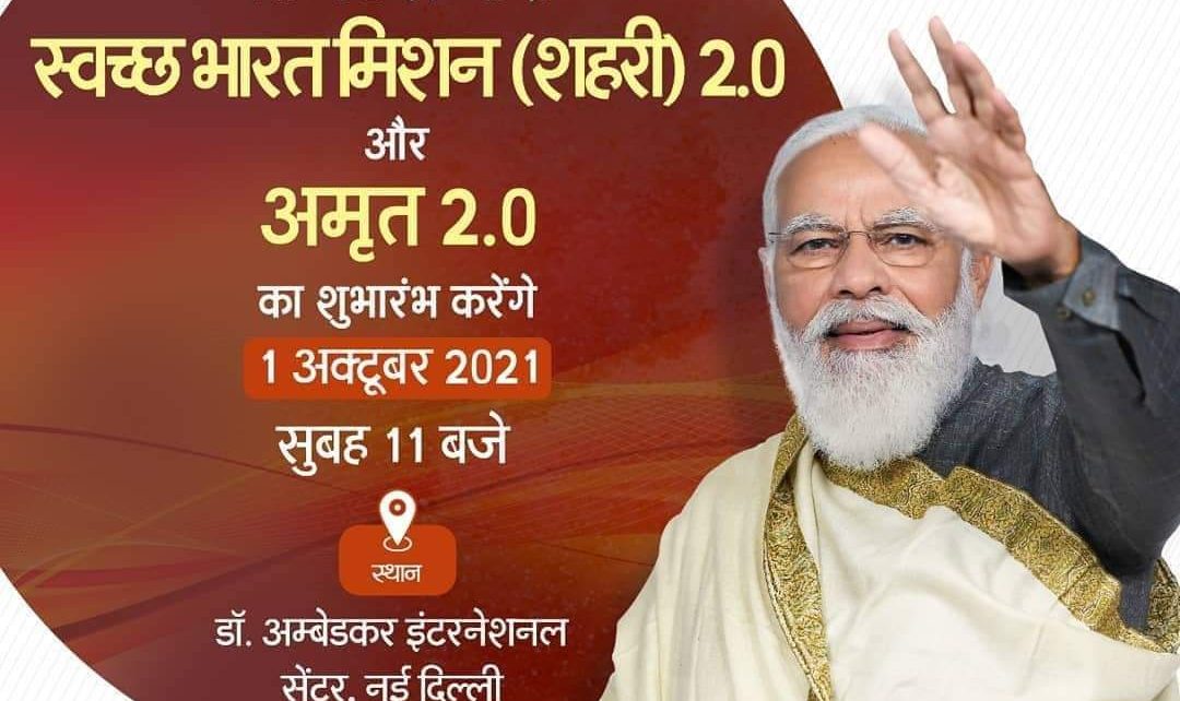 भारत के यशस्वी प्रधानमंत्री माननीय श्री Narendra Modi जी 1 अक्टूबर 2021 को ‘स्वच्छ भारत मिशन 2.0’ और ‘अमृत 2.0’ का शुभारंभ करेंगे।