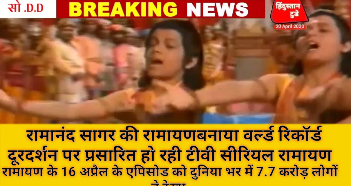 प्रसार भारती के अनुसार रामायण के 16 अप्रैल के एपिसोड को दुनिया भर में 7.7 करोड़ लोगों ने देखा इस तरह विश्व कीर्तिमान स्थापित करते हुए रामायण एक दिन में सबसे ज्यादा देखा जाने बाला टीवी प्रोग्राम बन गया है बताया जाता है कि इस टीवी सीरियल के जितने भी कलाकार है उन्होंने इस टीवी सीरियल में अपनी जान डालकर स्कोर प्रस्तुत किया था लेकिन आज इस प्रमुख रामायण को जब दोबारा प्रसार भारती द्वारा दोबारा चालू किया गया तो इसने एक नया वर्ल्ड रिकॉर्ड एवं टीआरपी के मामले में सबसे आगे है