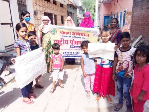 आयोजित पोषण जागरूकता रैली में उपस्थित महिलाओं को को पोषण के बारे में व्यापक जानकारी दी गई। कार्यक्रम में पर्यवेक्षक शहरी परियोजना श्रीमती प्रतिमा पाठक ने विभागीय पोषण योजना के बारे में जानकारी देते हुए कुपोषण से मुक्ति हेतु की बात कही। उक्त गतिविधियों का संचालन पूरे सितम्बर माह में किया गया।