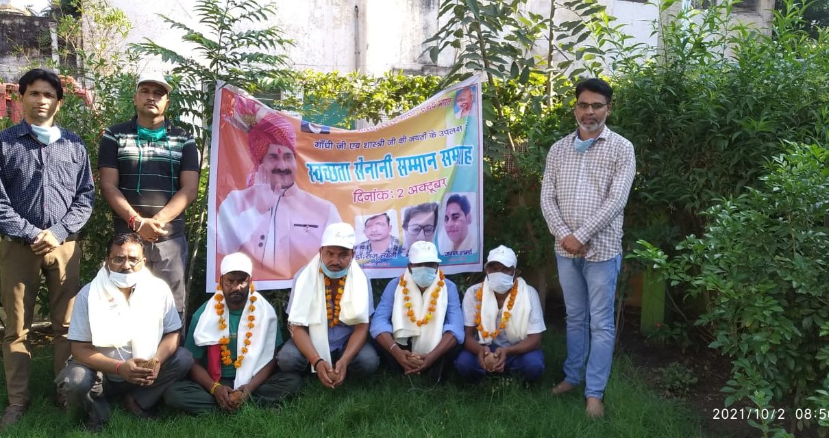 जहां पांच स्वच्छता सैनानीयों श्री महेन्द्र मेट, श्री धनीराम मेट, श्री रंजीत बाल्मीकि , श्री गोपाल बाल्मीकि और श्री पप्पी बाल्मीकि को शॉल श्री फल प्रदान कर सम्मानित किया गया।