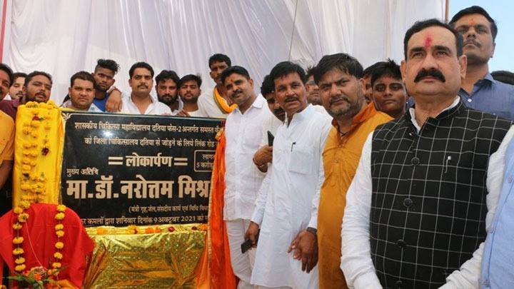 गृह मंत्री डॉ. नरोत्तम मिश्रा ने शनिवार को मेडिकल कॉलेज दतिया के सम्पूर्ण कैम्पस को जिला चिकित्सालय से जोड़ने वाली लिंक रोड का लोकार्पण किया। यह लिंक रोड 5 करोड़ 14 लाख रूपये से बनाई गई है।