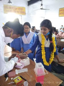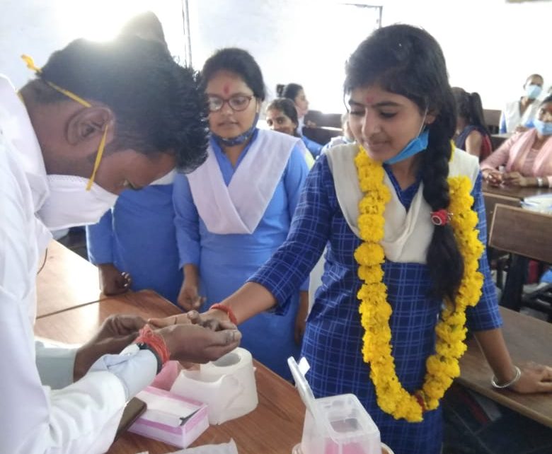 स्वस्थ बेटी स्वस्थ राष्ट्र भारत विकास परिषद शाखा दतिया द्वारा शासकीय हाई स्कूल होली पुरा मैं कन्या पूजन एवं एनीमिया एवं कुपोषण मुक्त हो देश इस हेतु छात्राओं का हीमोग्लोबिन टेस्ट करवाया गया