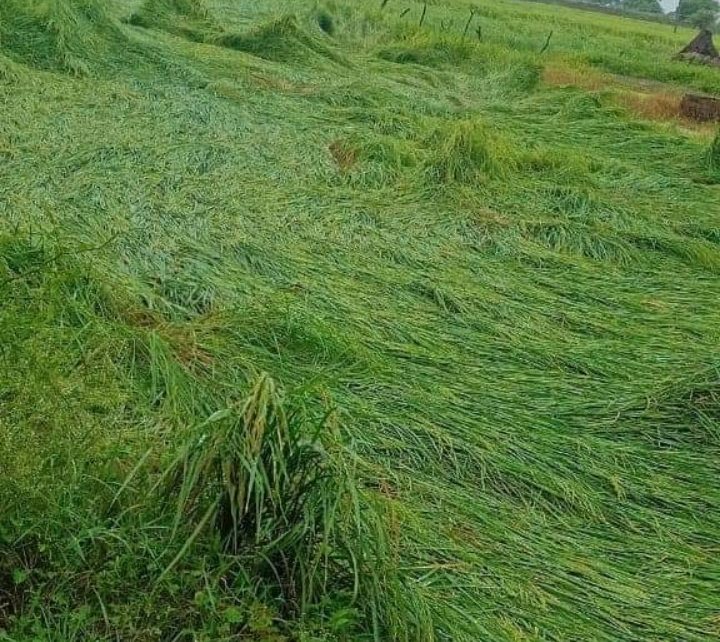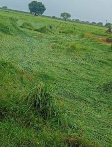 रविवार की रात तेज बारिश और हवा से किसानों की धान फसले हुई नष्ट।किसानों की चिंता बड़ी।