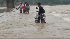 भारी बारिश के चलते पहुज नदी उफान पर आई, पुलिया डूबी : जान जोखिम में डालकर निकल रहे लोग