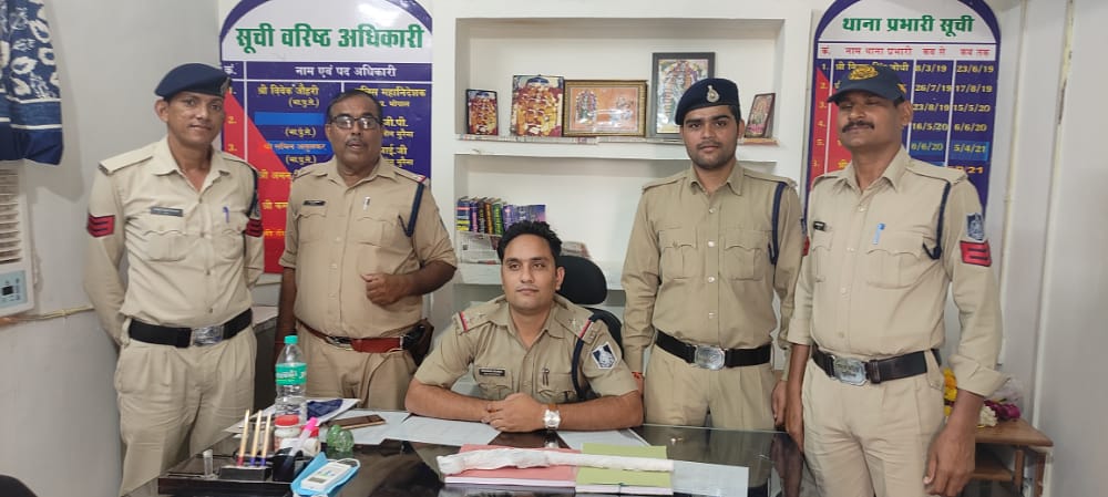 के निर्देशन में एवं श्रीमान अतिरिक्त पुलिस अधीक्षक महोदय श्री कमल मौर्य एवं श्रीमान अनुविभागीय अधिकारी महोदय बडोनी श्री दीपक नायक जी के मार्गदर्शन में जिगना पुलिस को महत्वपूर्ण सफलता प्राप्त हुई है यह कि आज दिनांक 20.10.21 को इलाका भ्रमण के दौरान मुखबिर द्वारा सूचना मिली कि ग्राम सलैया तिराहे पर एक व्यक्ति अवैध 12 बोर की अधिया लेकर घूम रहा है मुखबिर के बताये अनुसार सलैया तिराहे पर पहुंचे तो आरोपी कल्ला उर्फ महोबत पुत्र बलवीर यादव उम्र 22 साल निवासी सलैया पमार थाना जिगना का हाथ में 12 बार की अवैध अधिया लिये दिखा । फोर्स की मदद से आरोपी को पकड़कर उसके कब्जे से अवैध 12 बोर की अधिया जप्त की गयी । उक्त कार्यवाही में थाना प्रभारी उनि भास्कर शर्मा , सउनि हरिमोहन यादव प्र.आर 42 संतोष सगर , आर . 1015 राजीव दुबे , आर .822 वर्मेंद्र यादव , आर . 54 दीपेश अमर को मुख्य भूमिका रही । *** दतिया पुलिस सदैव आपके साथ