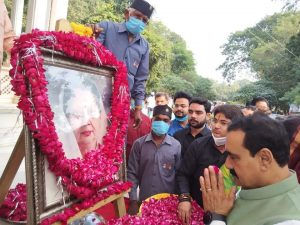 गृहमंत्री अम्मा महाराज श्रद्धेय राजमाता विजयाराजे सिंधिया की श्रद्धांजलि सभा में शामिल होकर उन्हें पुष्पांजलि अर्पित की