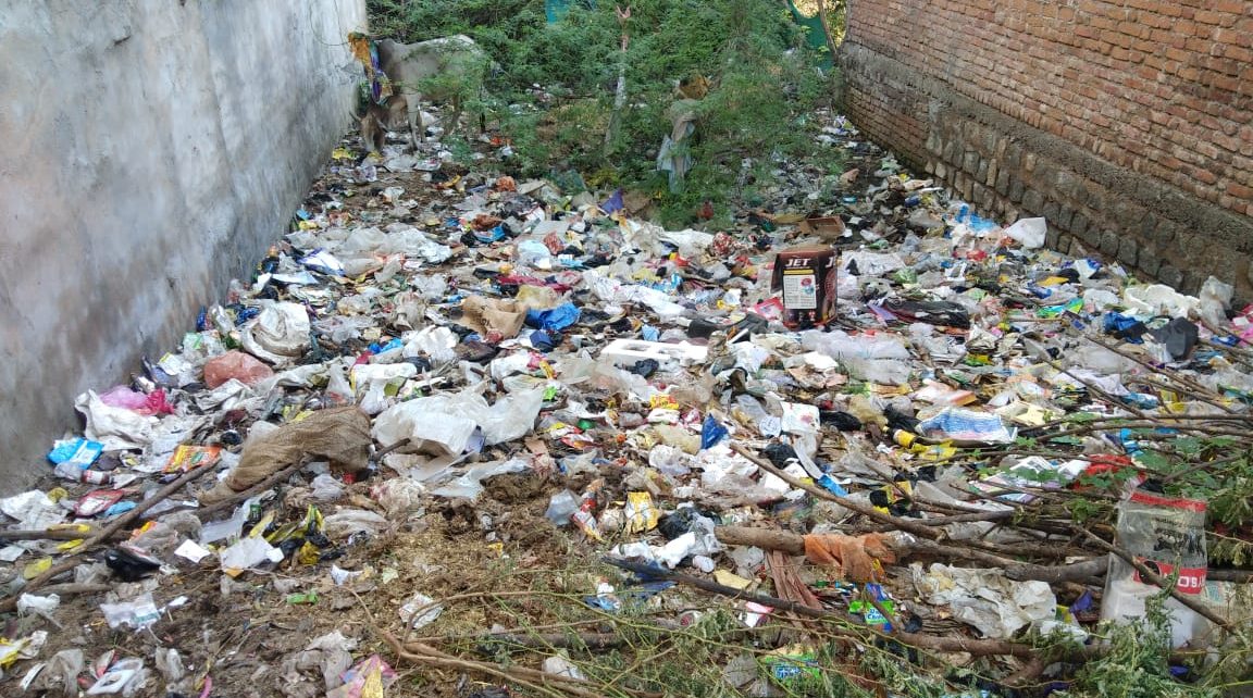 पीताम्बरा पुरी गली नम्बर 1 काली माता मंदिर के पास ,लगा कचरे का अम्बार