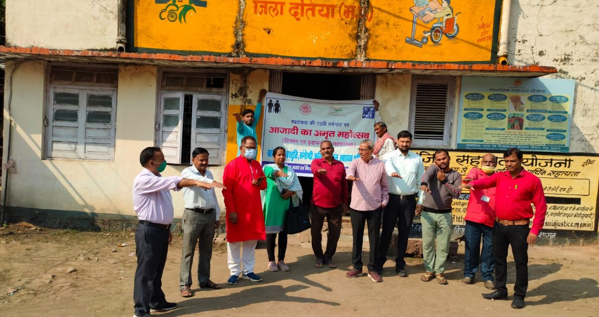 दतिया। 31 अक्टूबर राष्ट्रीय एकता दिवस एवं आजादी के अमृत महोत्सव के अवसर पर उप संचालक सामाजिक न्याय के निर्देशन में शपथ एवं रैली का आयोजन किया गया । जिसमें संदेश दिया गया कि हम सभी एक है कि राष्ट्र की एकता अखंडता और सुरक्षा को बनाए रखने के लिए हम सभी स्वयं को समर्पित कर देंगे और अपने देशवासियों के बीच यह संदेश फैलाने का भी भरसक प्रयत्न करेंगे शपथ में विनोद मिश्रा प्रभारी प्रमुख कलाकार द्वारा सरदार वल्लभ भाई पटेल के जीवन एवं दूरदर्शिता एवं कार्यों के बारे में बताया गया कि हम सबको देश की आंतरिक सुरक्षा सुनिश्चित करने के लिए अपना योगदान देना है, और शासन द्वारा संचालित योजनाओं का लाभ बिना किसी भेदभाव के पात्रता अनुसार हितग्राही को प्राथमिकता के तौर पर लाभ दिलाना है शपथ में सामाजिक न्याय विभाग के मुख्य लिपिक श्री आनंद मोहन शुक्ला, संजय निरंजन ,विनोद मिश्रा, मोहन गर्ग, परिवेश शर्मा, कुमैल जैदी, निधि गुप्ता , मुरारी लाल नागरची , नरेन्द्र कुमार दुबे, जसवंत बघेल दिनेश रायकवार रामकुमार पंडा आदि उपस्थित रहे।