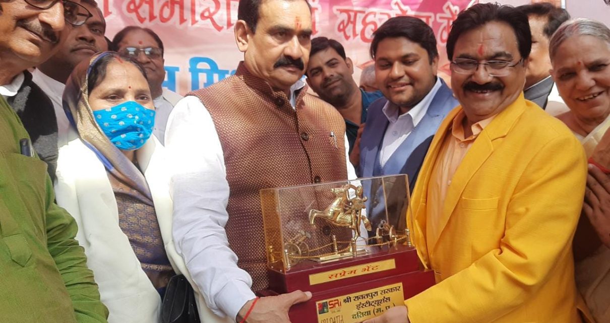 दतिया 31 अक्टूबर 2021 रविवार के दिन मध्य प्रदेश शासन के गृह मंत्री डॉ नरोत्तम मिश्रा के सम्मान में श्री रावतपुरा सरकार कॉलेज में दीपावली मिलन समारोह एवं सहयोग का भव्य आयोजन किया गया,